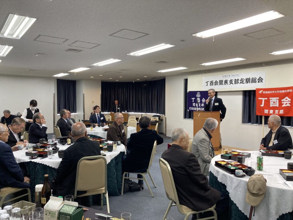 翌令和6年11月9日に開催した第41回総会・懇親会には、来賓に北海道科学大学・川上学長、短期大学部支部(丁酉会)・九谷田支部長、成田副支部長、東海支部・前橋副支部長、清水相談役をお迎えし、初めて出席された2名を含む18名の会員が集いました。総会では、事業報告、決算報告、事業計画及び会則一部改正について全員異議なく原案どおり可決され、最後に、支部応援歌「夢遥か」をそれぞれの想いを胸に高らかに斉唱し終了しました。