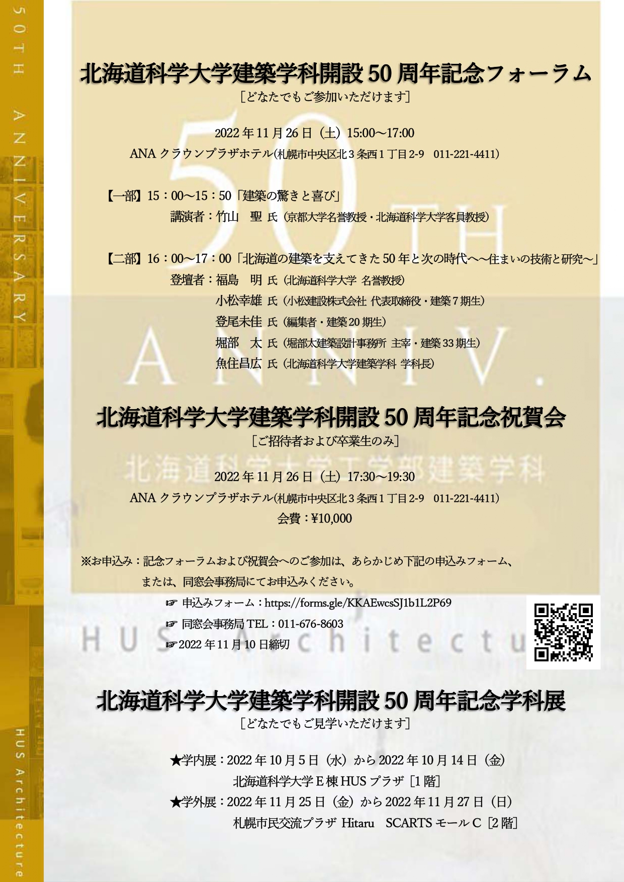 北海道科学大学工学部建築学科開設50周年記念事業の開催について