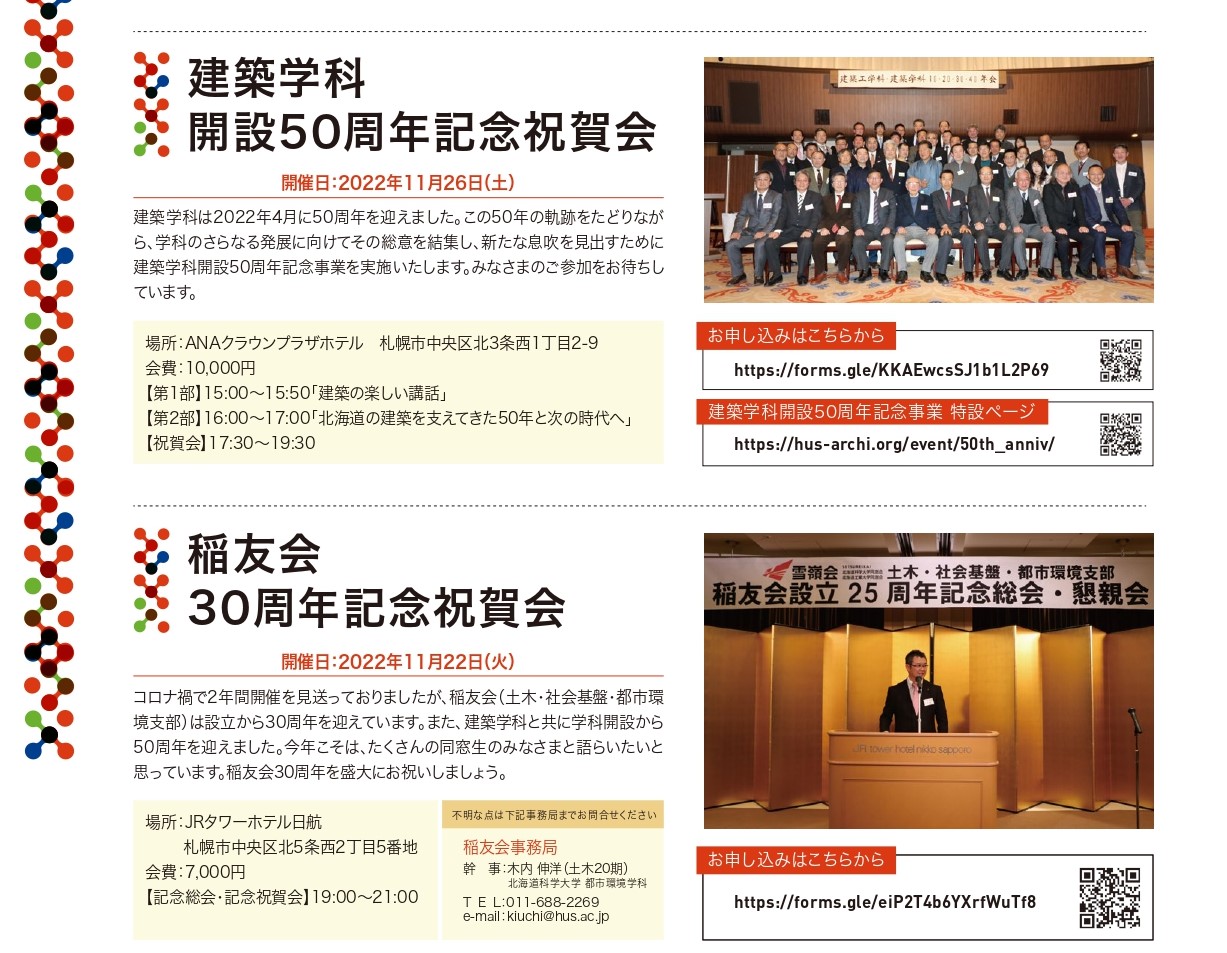 建築学科50周年記念祝賀会・稲友会(土木・社会基盤・都市環境学科支部)設立30周年記念祝賀会