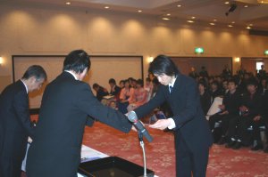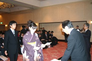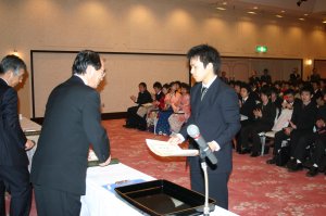 苫米地主任教授より一人一人へ授与、協学会からの記念品はシステム手帳でした。