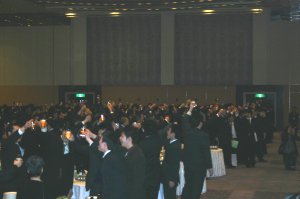 同窓会副会長の市呂純一(経営6期卒)から卒業生に対するメッセージが伝えられ、終宴の乾杯をもって祝賀会を終了しました。また、学位記授与式から卒業祝賀会までを音楽でサポートして下さったサニーフールズジャズオーケストラの方々、大変お疲れさまでした。