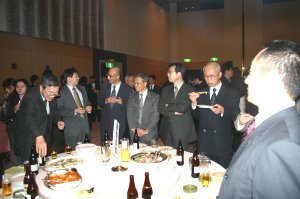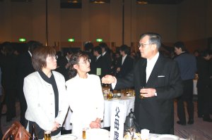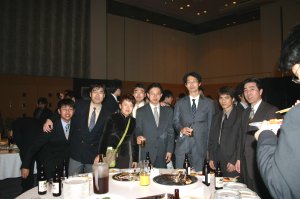 卒業祝賀会の後、同窓会建築支部長の伊達さん(6期卒)が内装を設計した「AQUA」にて、建築工学科の謝恩会が開催されました。謝恩会には、柴田学長や小林同窓会長も参加し、ほぼ全員の卒業生・教員が参加しました。