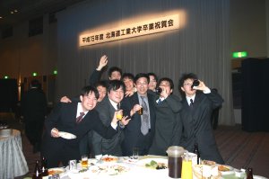 当日は、学位記授与式の後、15:00からホテルロイトン札幌にて大学協学会主催・同窓会後援の卒業祝賀会が開催されました。さらに、学科謝恩会やゼミ毎の打ち上げなどが開催され、卒業生らは4年間(5年以上の人もいますが)の勤勉を労いつつ、ほろ酔い気分で大学生活に終止符を打ち、ケジメを付けて新たな道を歩み始めました。