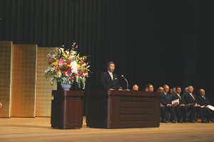 柴田学長の告辞に引き続き、小林敏道会長の祝辞がありました(会長が壇上で暫く沈黙・・・? その理由は、例年のように、卒業生が起立・礼をしないので躊躇したそうです)。