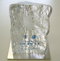 贈呈した楯は大学のレターヘッド入りのガラス楯です。