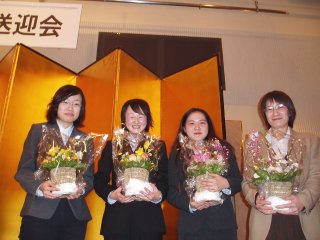 4月2日(金)に行われた稲嶺会の歓送迎会にて退職された教員8名に記念楯を贈りました。また、退職された臨時職員と転出異動された職員へフラワーアレンジメントを贈りました。