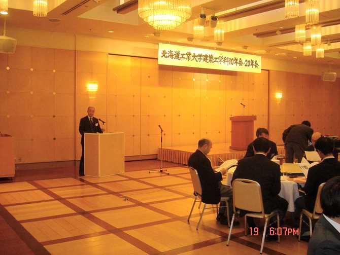 2005年2月19日(土)18:00から札幌東急インにて、標記のOB親睦会が開催されました。教員10名、9期29名、19期19名、支部役員7名 、計65名が参加しました。今年は橋本先生の退職記念講演を30分程行った後に懇親会を開催しました。