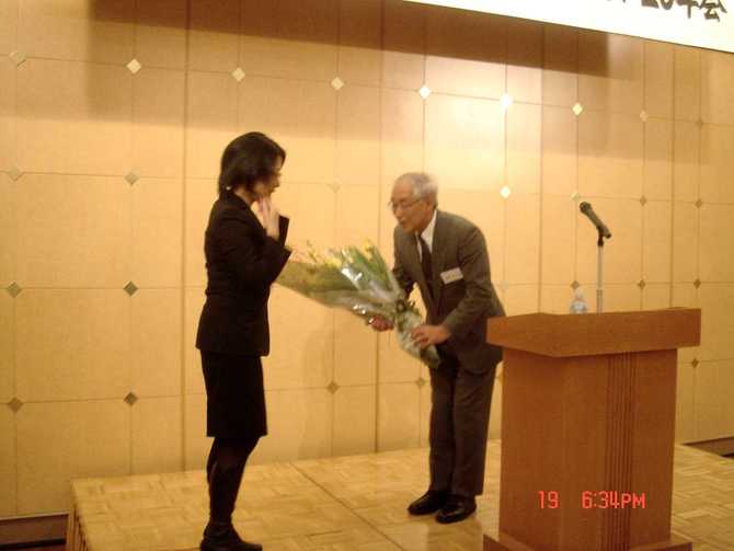 記念講演では北海道における鉄骨構造に関するお話しがあり、講演の後、教え子の米田さんより花束が贈呈されました。