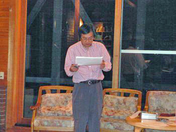 8.今日の集まりは「地域支部長サミット」なので山本さん・平川さん・川染さん・吉田さんの4人と小林会長・伊東常任幹事、計6名でサミット宣言を明日のチェックアウト時間までに考えて下さい。同窓会のホームページで公開したいと思います。