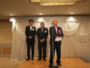 小林敏道会長の挨拶に続き、西理事長の挨拶、苫米地学長の挨拶、須合國彦氏の乾杯で祝賀会が始まりました。途中、受賞者の挨拶、地域支部役員の挨拶などがあり、賑やかなひと時のなかで、旧交を温められたようです。