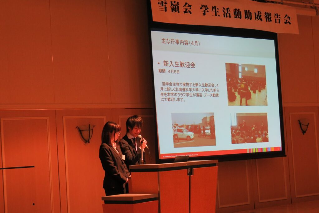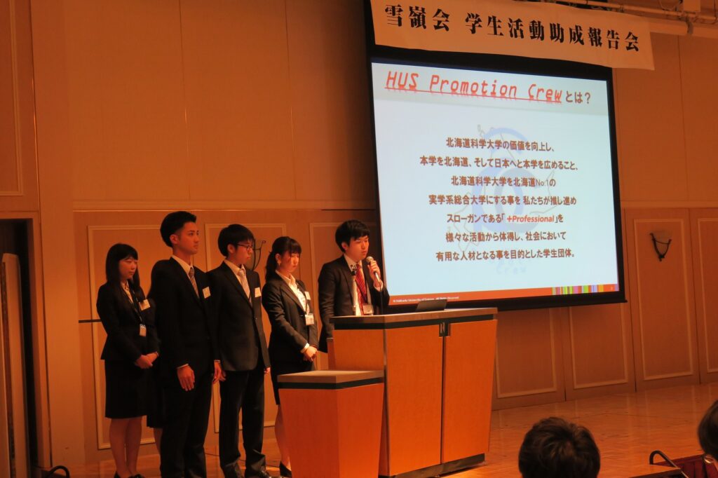 前田キャンパス所属の同窓会 雪嶺会・北薬会(北海道科学大学薬学部同窓会)・丁酉会(北海道科学大学短期大学部同窓会)では、「会員の諸活動に対する助成」事業を充実させること、後輩の自活的な諸活動の促進および準会員と正会員との交流を推進することを目的とし、正課外の諸活動に意欲的な学生(個人または複数名)または学生団体を支援するための助成「学生活動助成」を行っています。