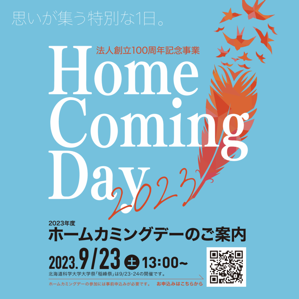 今年はさまざまなイベントとともに、交流会(懇親会)も実施いたします「お帰りなさい」の気持ちをこめて、皆様をお迎えします 2023/9/23(土)13:00~ 学校法人北海道科学大学は2024年に法人創立100周年を迎えます。ホームカミングデーは、...