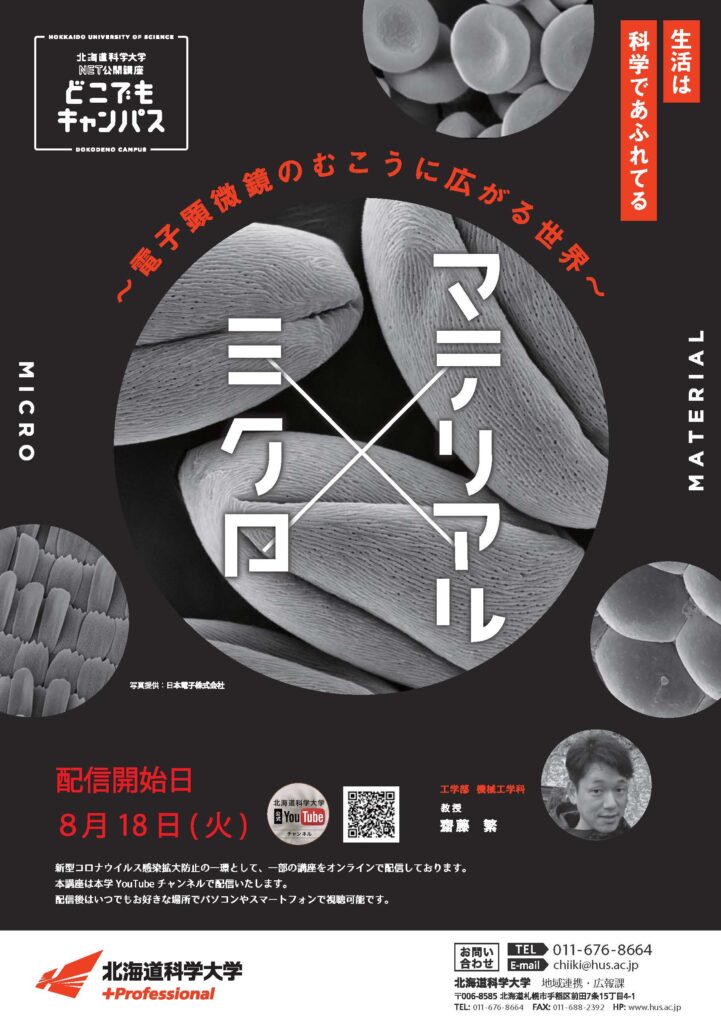 北海道科学大学では、地域貢献活動の一環として学内・学外で地域住民の皆様を対象に公開講座を開催しています。例年、さまざまな場所で開催して参りましたが、今年度は新型コロナウイルスの影響により、NET公開講座という形でお届けしています。 「マテリ...
