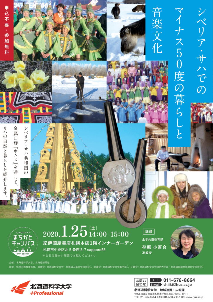 北海道科学大学まちかどキャンパス「シベリア・サハでのマイナス50度の暮らしと音楽文化」開催のお知らせ