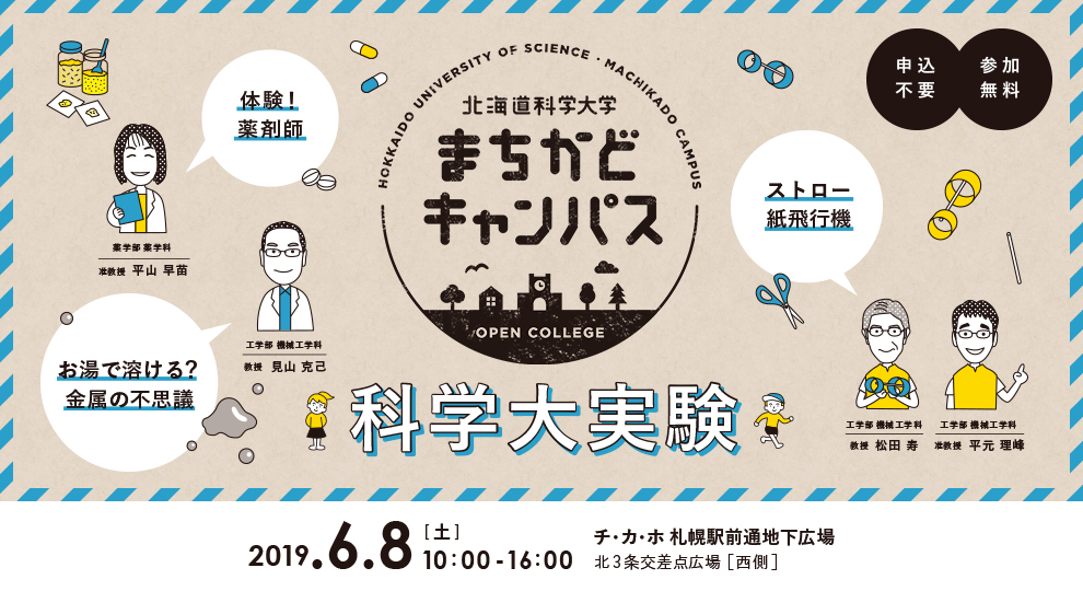 北海道科学大学まちかどキャンパス「科学”大”実験」のお知らせ