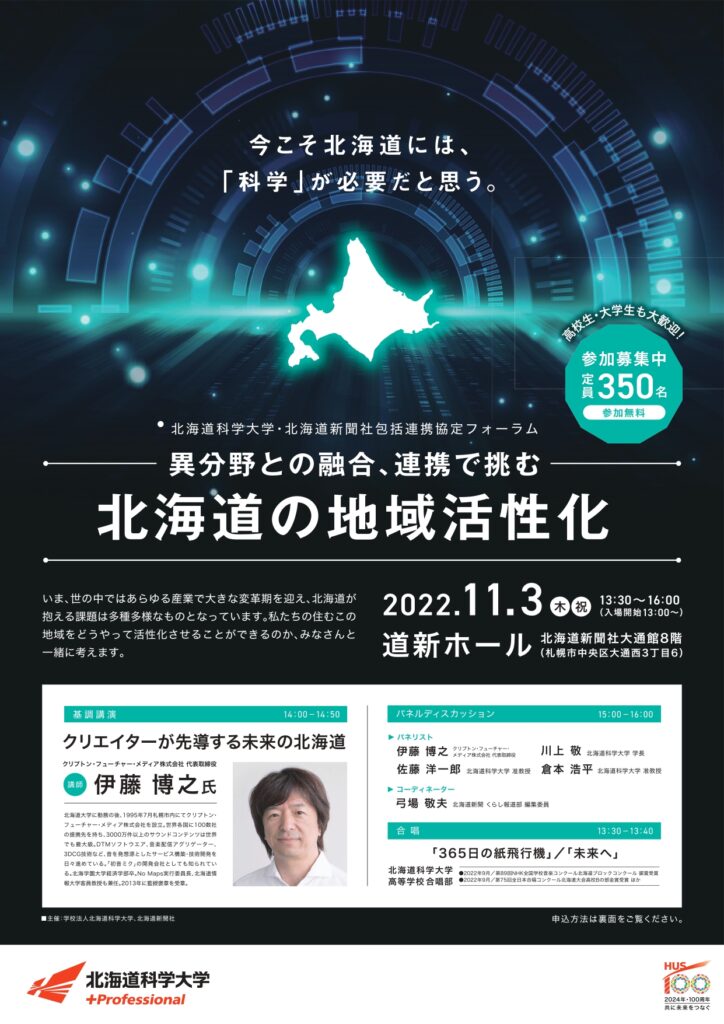 【100周年記念事業】北海道新聞社との包括連携協定フォーラムのお知らせ